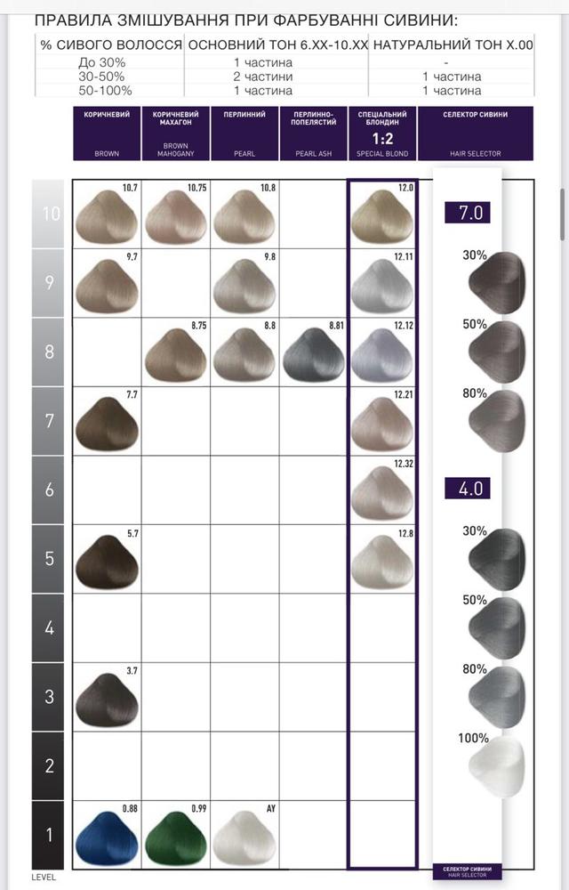 Ми має ряд .00, який зафарбовує навіть 70% сивини на 6% окислювача.